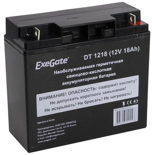 Аккумулятор для слаботочных систем Exegate DT 1218 12V, 18Ah [EX282969RUS]