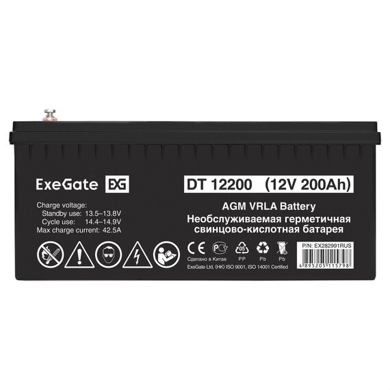 Аккумулятор Exegate DT 12200 12V, 200Ah, под болт М8 [EX282991RUS]