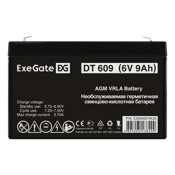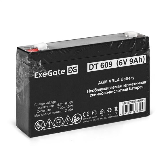Аккумулятор Exegate DT 609 6V, 9Ah, клеммы F1 [EX294051RUS]