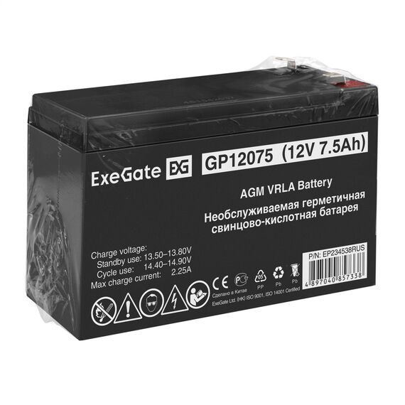 Аккумулятор Exegate GP12075 12V, 7.5Ah 1227W, клеммы F2 [EP234538RUS]