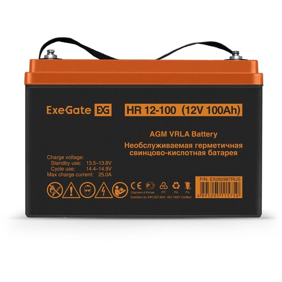 Аккумулятор Exegate HR 12-100 12V, 100Ah, под болт М6 [EX282987RUS]