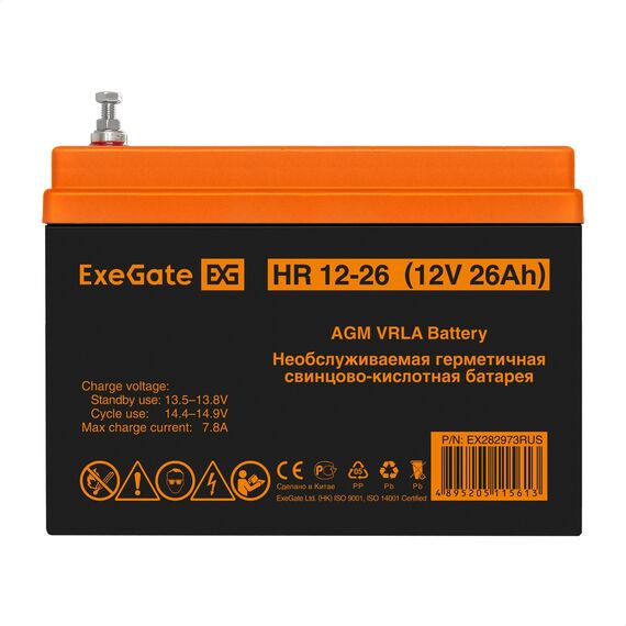 Аккумулятор Exegate HR 12-26 12V, 26Ah, под болт М5 [EX282973RUS]