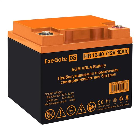Аккумулятор Exegate HR 12-40 12V, 40Ah, под болт М6 [EX282979RUS]