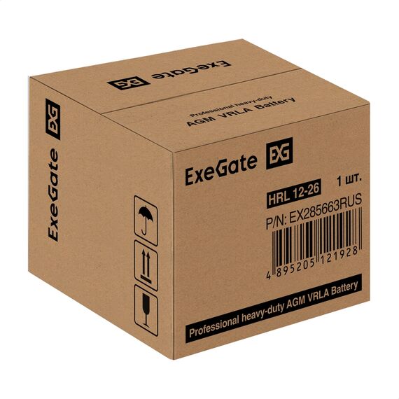 Аккумулятор Exegate HRL 12-26 12V, 26Ah, клеммы F3, болт М5 с гайкой [EX285663RUS]