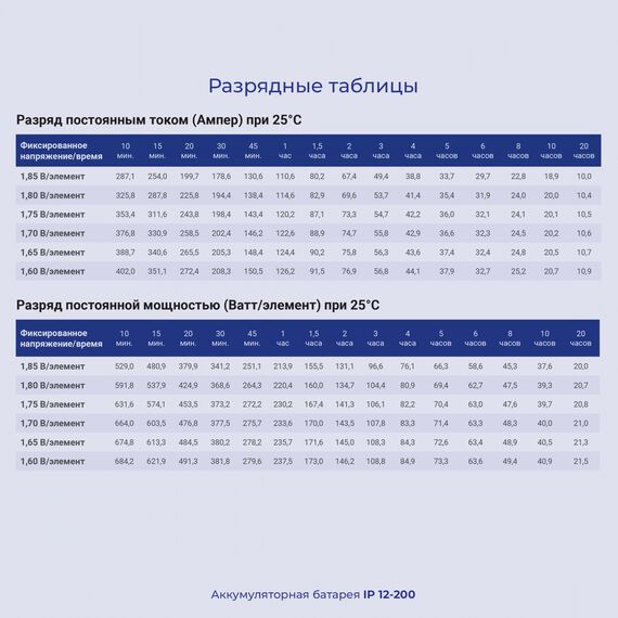 | Саморазрядка | Аккумулятор можно хранить максимум в течение 6 месяцев при температуре 25 C, после чего необходим подзаряд. При более высоких температурах период времени будет сокращен |