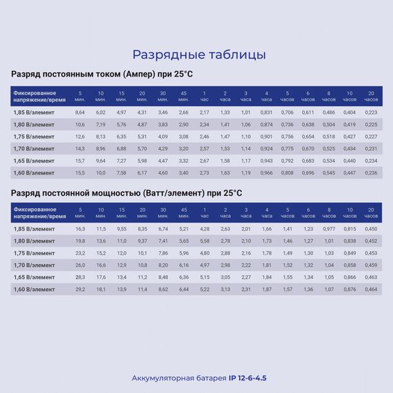 | Саморазрядка | Батареи IPPON разрешается хранить без подзарядки не более 6 месяцев при температуре 25 C (77 F). При повышении температуры срок хранения без подзарядки уменьшается |