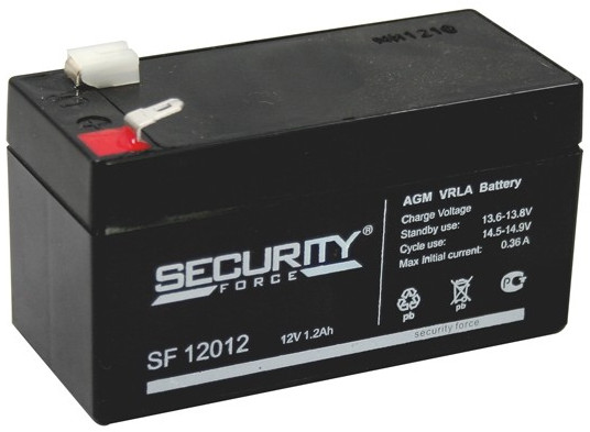 Аккумулятор Security Force SF 12012 стационарный свинцово-кислотный, емкость 1.2 Ач, номинальное напряжение 12 В, размеры 97х43х58 мм