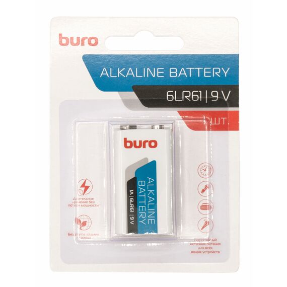Батарея BURO Alkaline 6LR61 9V 1шт блистер