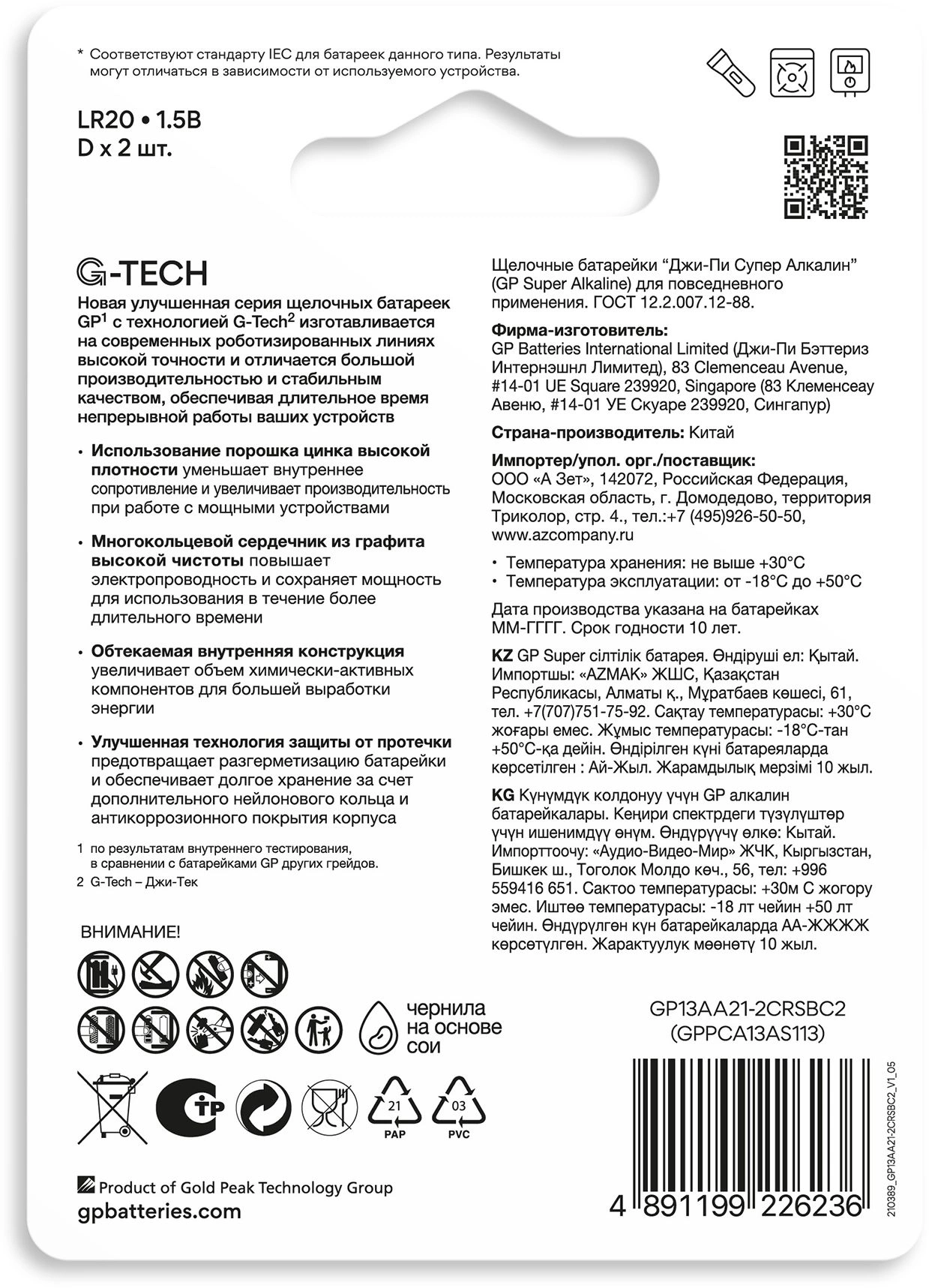 Батарея GP 13AA21-2CRSBC2 20/160 Super Alkaline D (2шт)