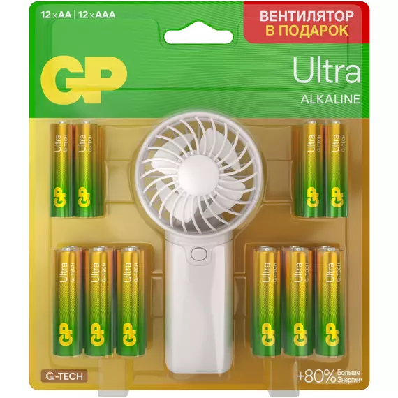 Батарея GP 15AU/24AU/FANWETA21-2CRSBC24 AA/AAA (промо:Вентилятор в подарок) (24шт) блистер