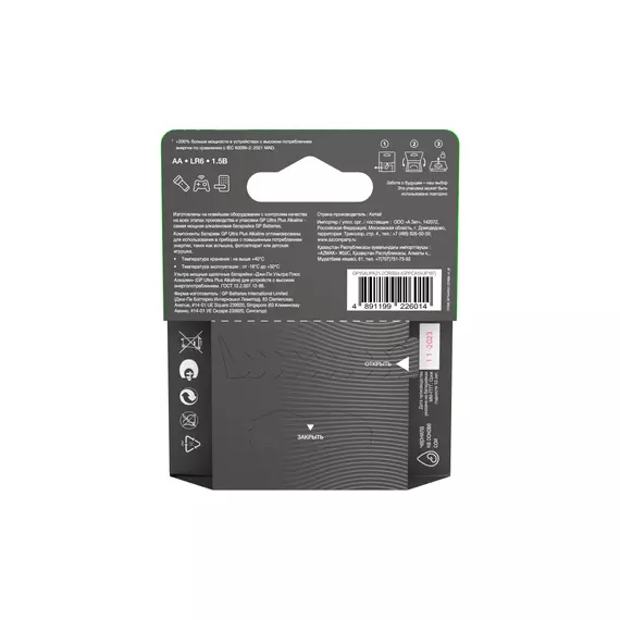 | Дополнительная информация | Новая улучшенная серия щелочных батареек GP с технологией G-Tech отличается высочайшей производительностью и стабильным качеством, обеспечивая длительное время непрерывной работы ваших устройств. |