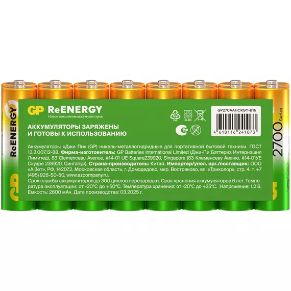Аккумулятор GP 270AAHCRGY AA NiMH 2700mAh (16шт) спайка [270AAHCRGY-B16 /192]