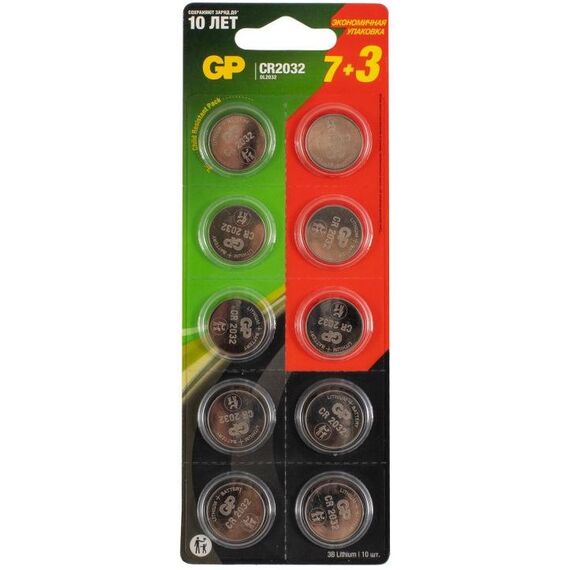 Батарея GP CR2032-7/3-2CR10 Lithium Cell (10шт) блистер [15743]