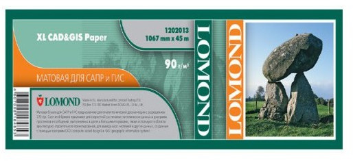 Бумага Lomond 1202013 ролик, 1067ммх45м, 90g/m, втулка 50мм, матовая