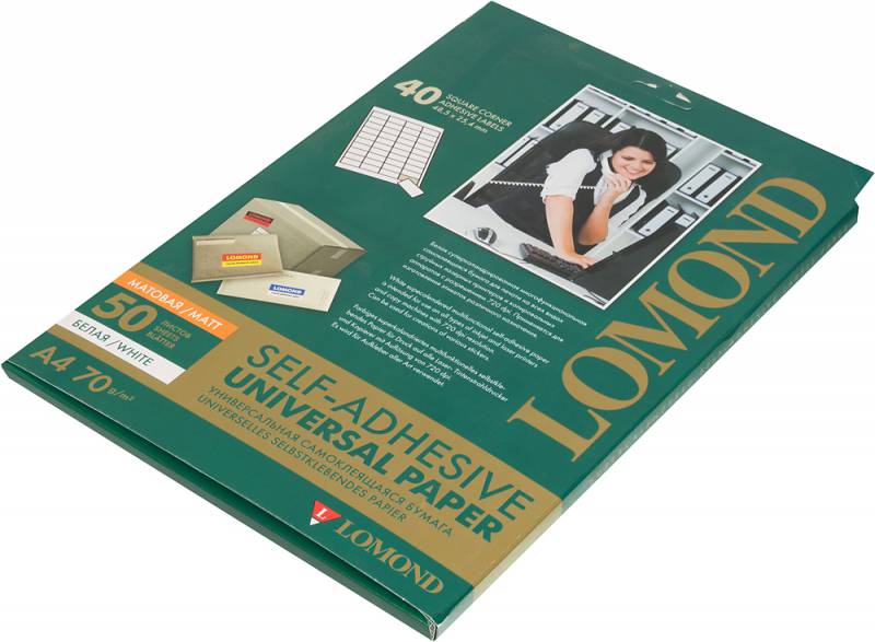 Этикетки Lomond 2100195 A4 25.4x48.5мм 40шт на листе/70г/м2/50л./белый матовое самоклей. универсальная (с покрытием)