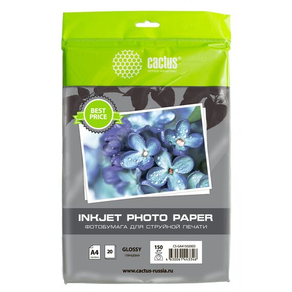 Фотобумага Cactus CS-GA415020ED A4 150г/м2 20л белый глянцевое для струйной печати