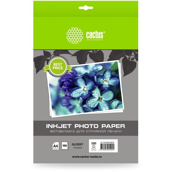 Фотобумага Cactus CS-GA4200100ED A4 200г/м2 100л белый глянцевое для струйной печати