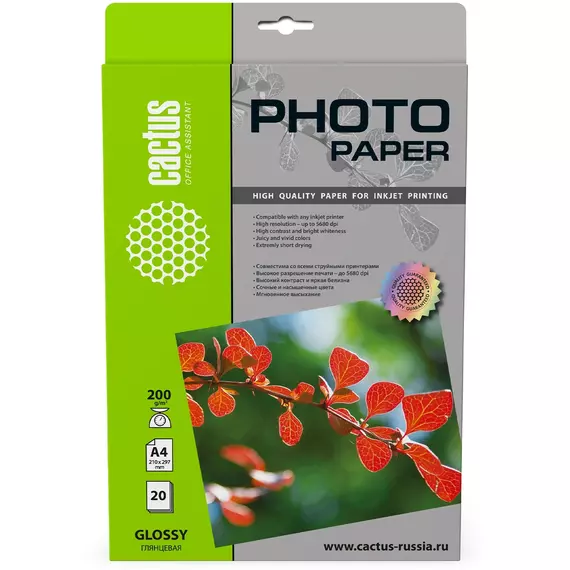Фотобумага Cactus CS-GA420020 A4 200г/м2 20л белый глянцевое для струйной печати