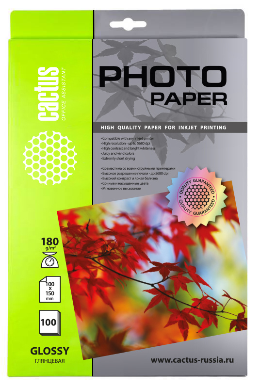 Фотобумага Cactus CS-GA6180100 10x15 180г/м2 белый 100л глянцевое для струйной печати