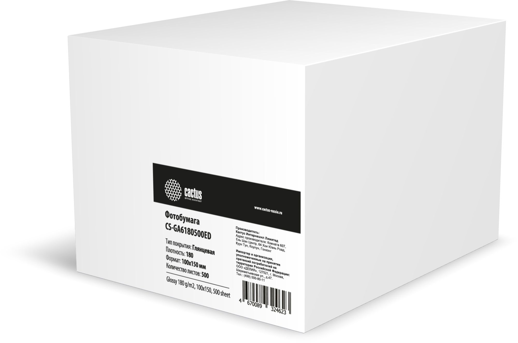 Фотобумага Cactus CS-GA6180500ED A6 180г/м2 500л белый глянцевое для струйной печати