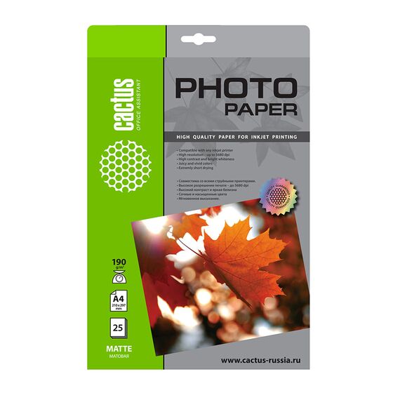 Фотобумага Cactus CS-MA419025 A4 190г/м2 25л белый матовое для струйной печати