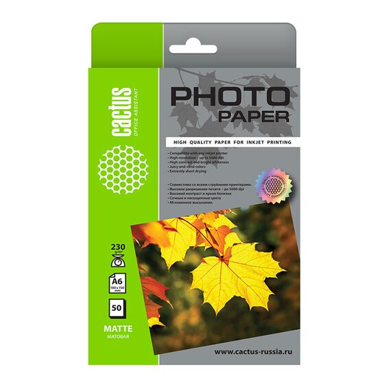 Фотобумага Cactus CS-MA623050 10x15/230г/м2/50л./белый матовое для струйной печати