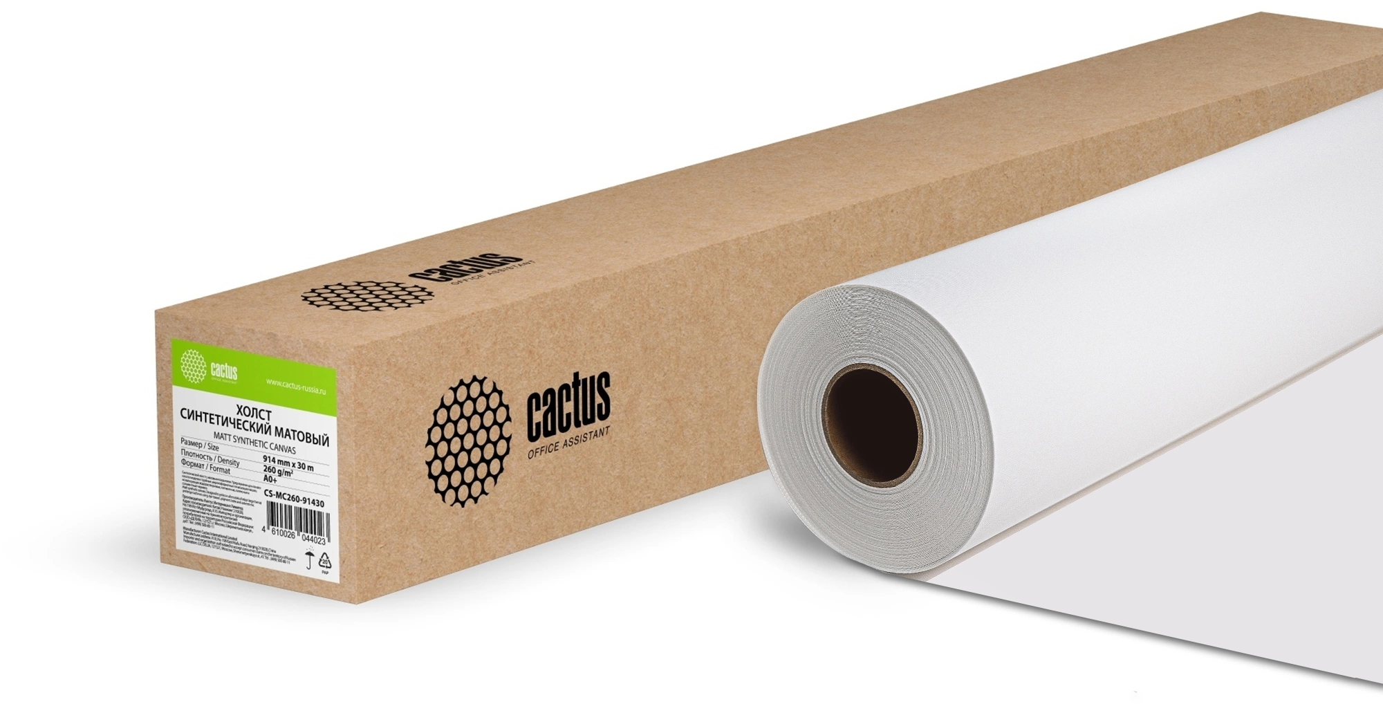 Холст Cactus CS-MC260-91430 914мм-30м/260г/м2/белый матовое синтетика для струйной печати втулка: 50.8мм (2")