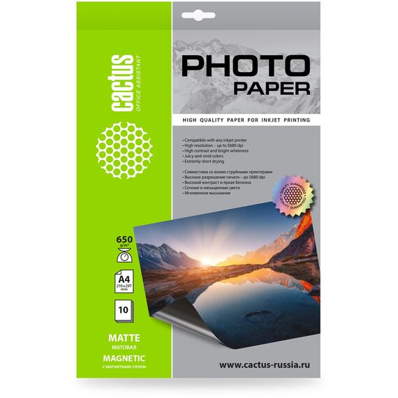 Фотобумага Cactus CS-MMA465010 A4 650г/м2 10л белый матовое магнитный слой для струйной печати