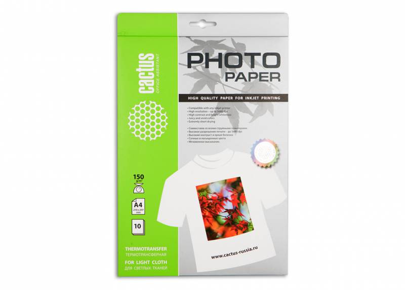 Термотрансфер Cactus CS-TD15010 A4 150г/м2 10л. для светлых тканей