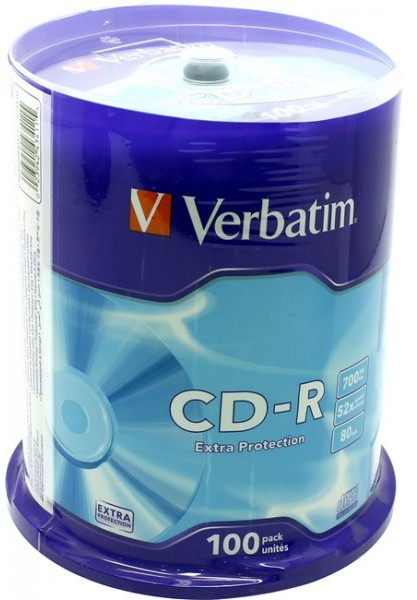 Диски CD-R Verbatim 700Mb 52x sp. уп.100 шт на шпинделе [43411]