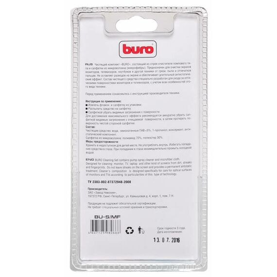 Чистящий набор BURO BU-S/MF салфетки + гель для экранов и оптики блистер 100мл