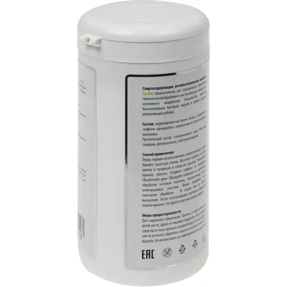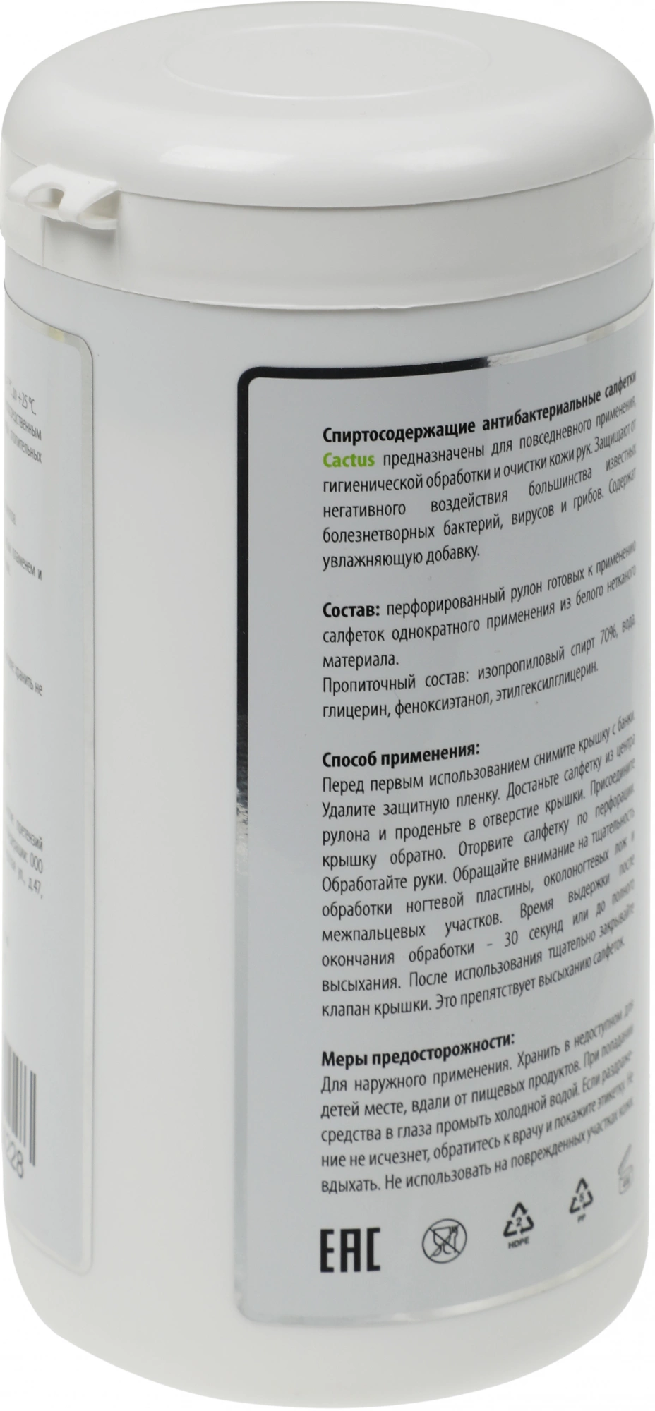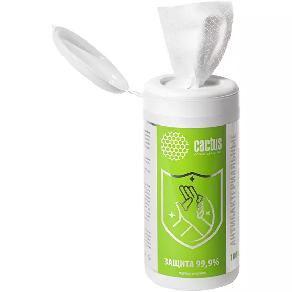 Салфетки влажные для рук антибактериальные спиртовые Cactus CS-ASHCL100 100 лист.