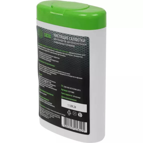 Салфетки Cactus CS-T1005 для планшетов и смартфонов малая туба 100шт влажных
