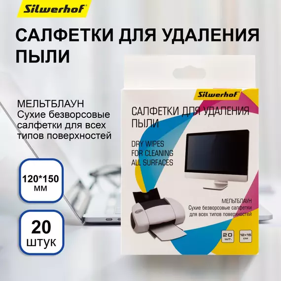 Салфетки Silwerhof 20шт для удаления пыли коробка сухих