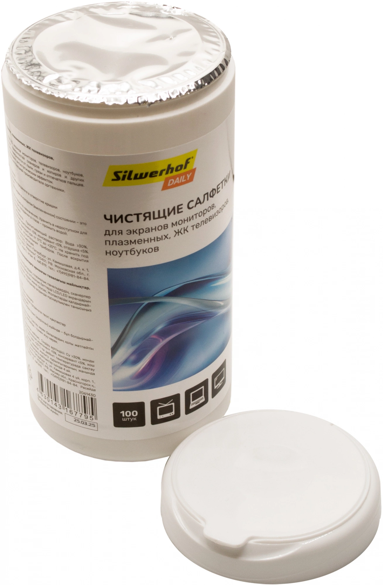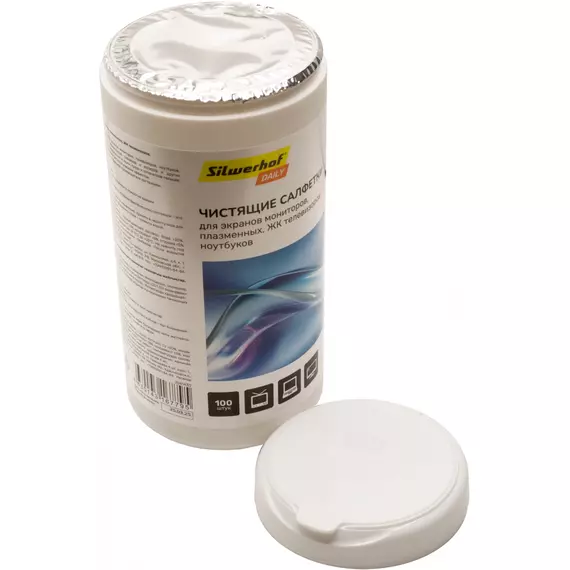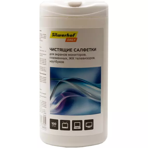Салфетки Silwerhof DAILY для экранов мониторов/плазменных/ЖК телевизоров/ноутбуков туба 100шт влажных