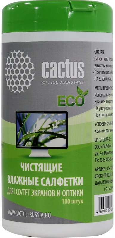 Влажные салфетки для техники Cactus CS-T1001E 100шт