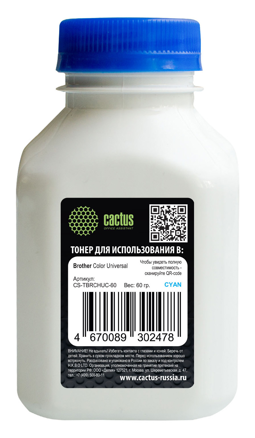 Тонер Cactus CS-TBRCHUC-60 голубой флакон 60гр. для принтера Brother Color Universal TN-230/241/213/217/320/421