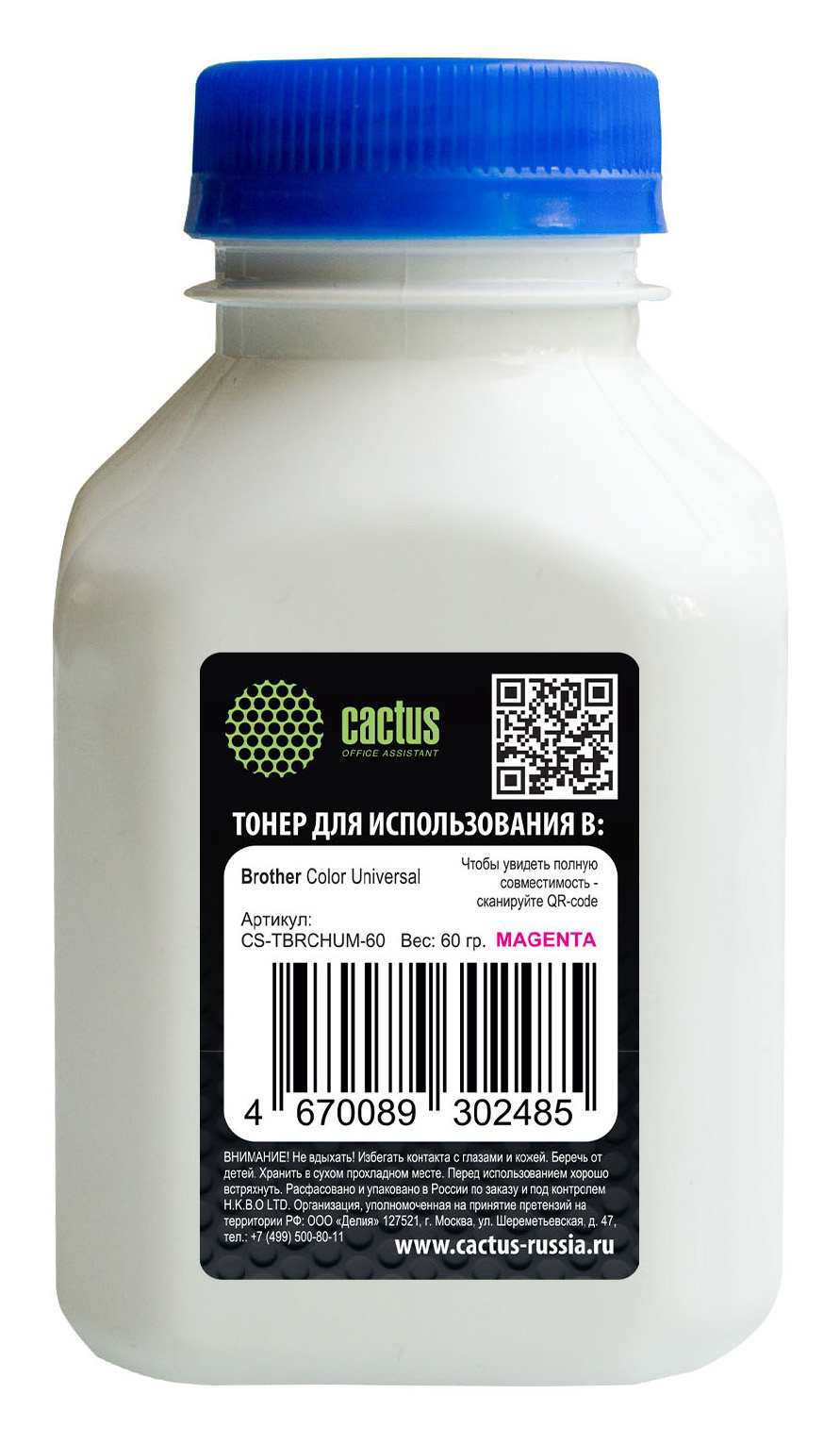 Тонер Cactus CS-TBRCHUM-60 пурпурный, флакон 60гр., для принтера Brother Color Universal TN-230/241/213/217/320/421