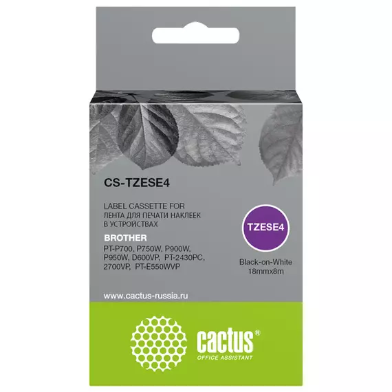 Картридж ленточный Cactus CS-TZESE4 черный на белом 18x8 для PT-P700, P750W, P900W, P950W, D600VP, PT-2430PC, 2700VP, PT-E550WVP
