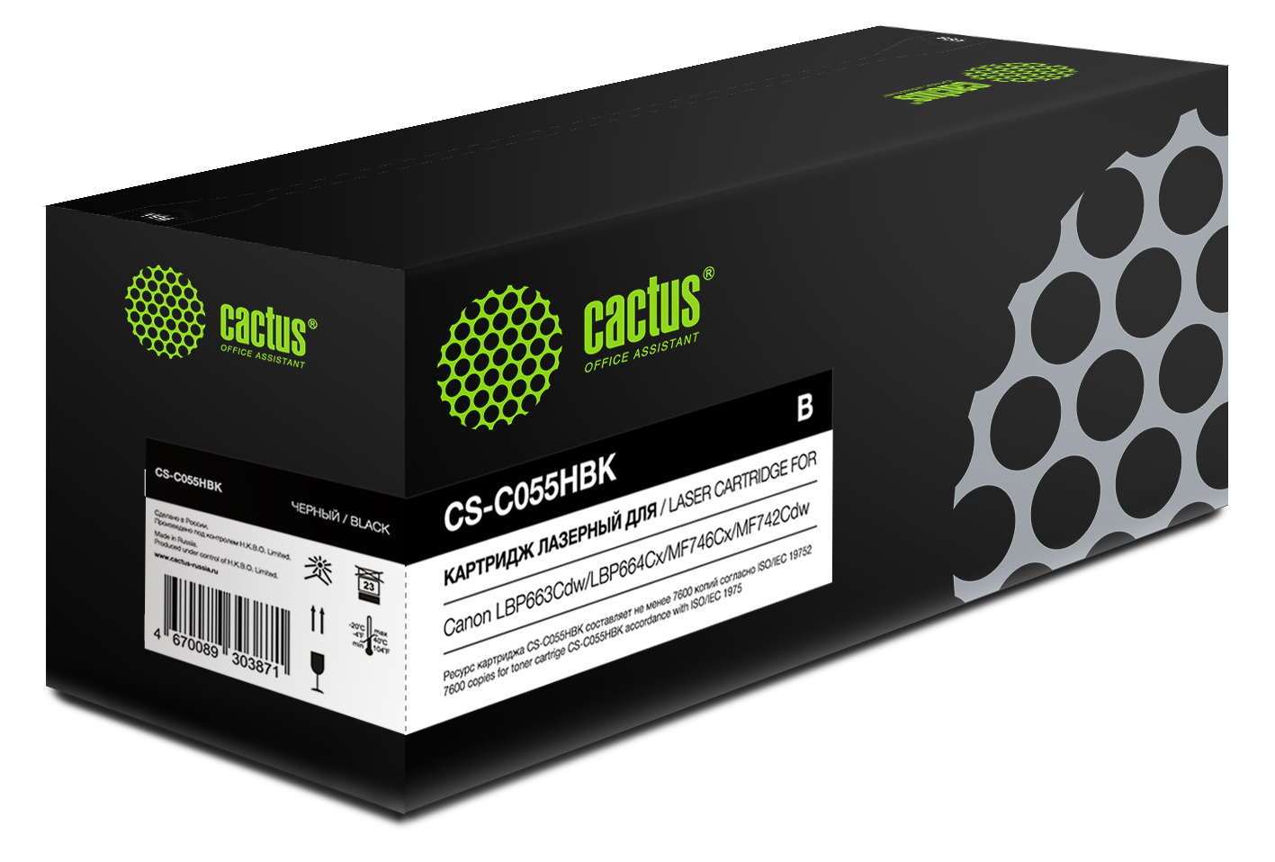Картридж лазерный Cactus CS-C055HBK черный (7600стр.) для Canon LBP663Cdw/LBP664Cx/MF746Cx/MF742Cdw/MF744Cdw