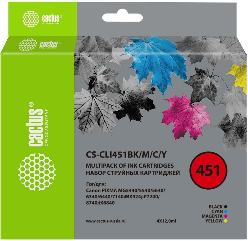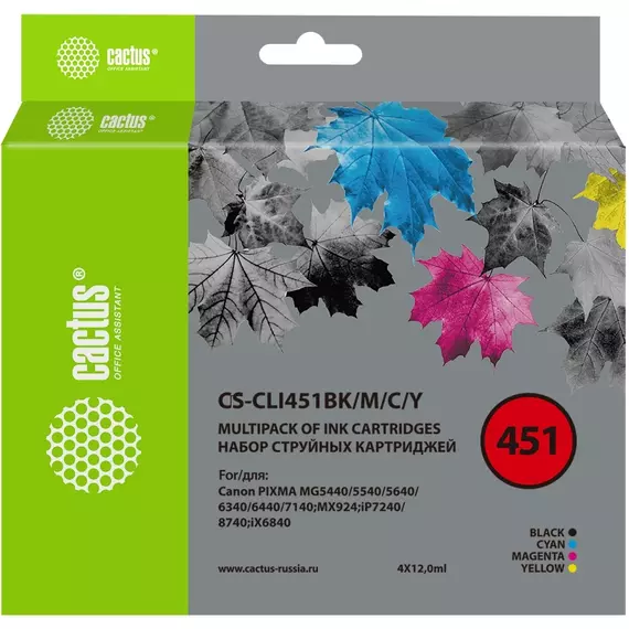 Картридж струйный Cactus CS-CLI451BK/M/C/Y черный/голубой/желтый/пурпурный набор 48мл для Canon MG6340/5440/IP7240 с чипом