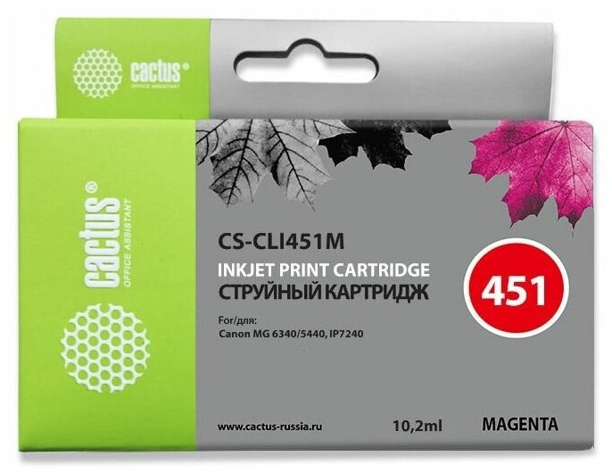 Картридж Cactus CS-CLI451M для Canon MG 6340/5440/IP7240, 9.8ml