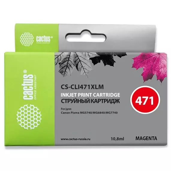 Картридж струйный Cactus CS-CLI471XLM пурпурный 10.8мл, совместим с Canon TS5040, MG5740, MG6840, MG7740, с чипом