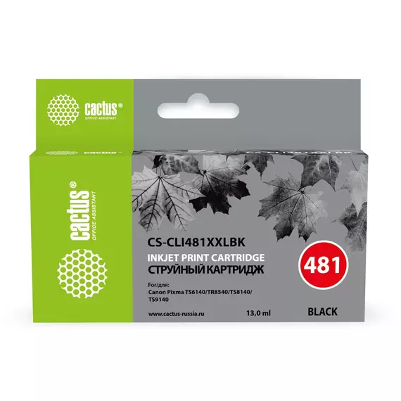 Картридж струйный Cactus CS-CLI481XXLBK черный 13мл для Canon Pixma TR7540/TR8540/TS6140/TS8140 с чипом