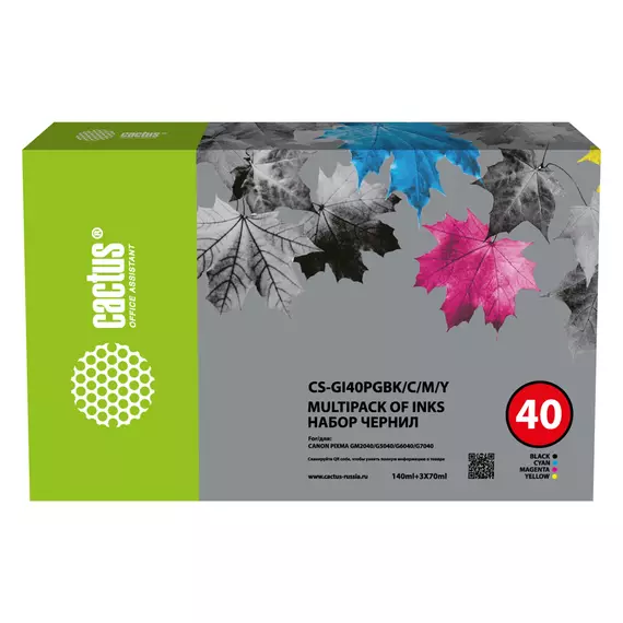 Чернила Cactus CS-GI40PGBK/C/M/Y голубой/пурпурный/желтый/черный набор для Canon Pixma G5040/G6040/GM2040