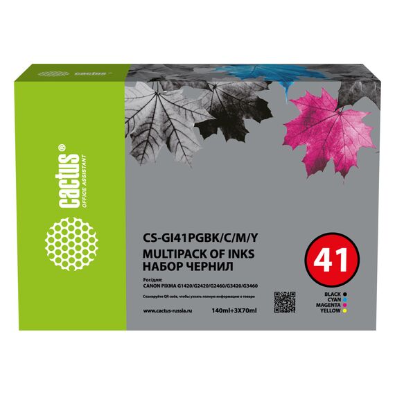 Чернила Cactus CS-GI41PGBK/C/M/Y голубой/пурпурный/желтый/черный для Canon PIXMA G1420/G2420/ G2460/G3420/G3460