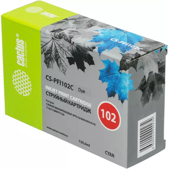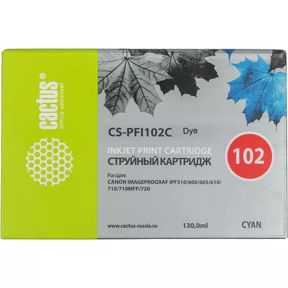 Картридж струйный Cactus CS-PFI102C синий 130мл для Canon IP iPF500/iPF600/iPF700 MFP M40/iPF765 LP17/LP24 с чипом