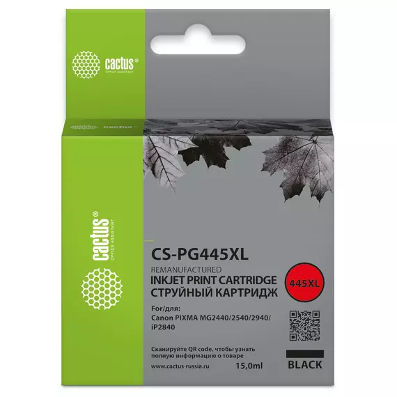 Картридж струйный Cactus CS-PG445XL черный 15мл, для Canon PIXMA MG2440/2540/2940/iP2840 с чипом