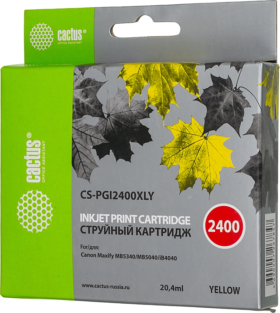 Картридж струйный Cactus CS-PGI2400XLY желтый пигм. 20.4мл для Canon MAXIFY iB4040/ МВ5040/ МВ5340 с чипом