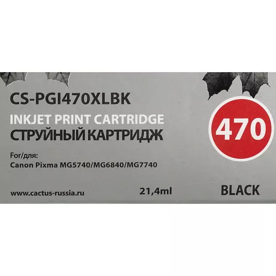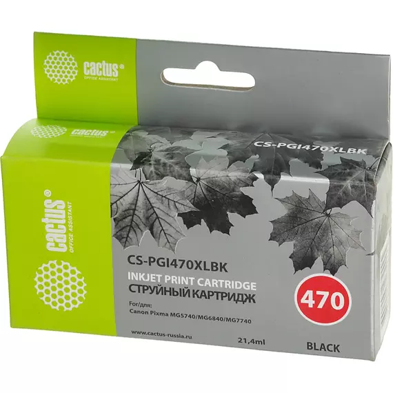 Картридж струйный Cactus CS-PGI470XLBK черный пигментный 21.4мл для Canon Pixma MG5740 MG6840 MG7740 TS5040 6040 8040 9040 с чипом